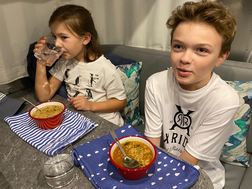 When Tim stepped into the Airstream that night after giving up on the hitch, we exchanged a glance that silently (so as not to scare the children) questioned whether maybe we were in over our heads. This would not be the last time we exchanged such a glance. Exhausted, we tucked the kids in and fell into a restless sleep in the main cabin on our converted couch-bed (which is actually pretty comfortable, not that it mattered; I would have slept on a bed of rocks as tired as I was).