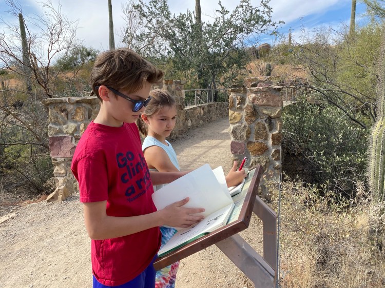 We wandered away from the ticket booth, at saguaro national park. My eyes did too, and they finally focused on the map of the museum my brother had grabbed. I glanced at it, thought, and then spoke. This is a pretty big museum, I pointed out, noticing the winding long edges of the map. That’s true, my mom acknowledged. Lots of exhibits, and a couple short hikes too. We found a rock wall, and my mom sat down, so me and graham followed suit. We sat, and stared over my mom’s shoulder to put in our thoughts on where to go. Graham, of course, chose reptiles and amphibians, and I chose ocelots, bobcats, and javelinas.