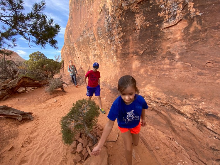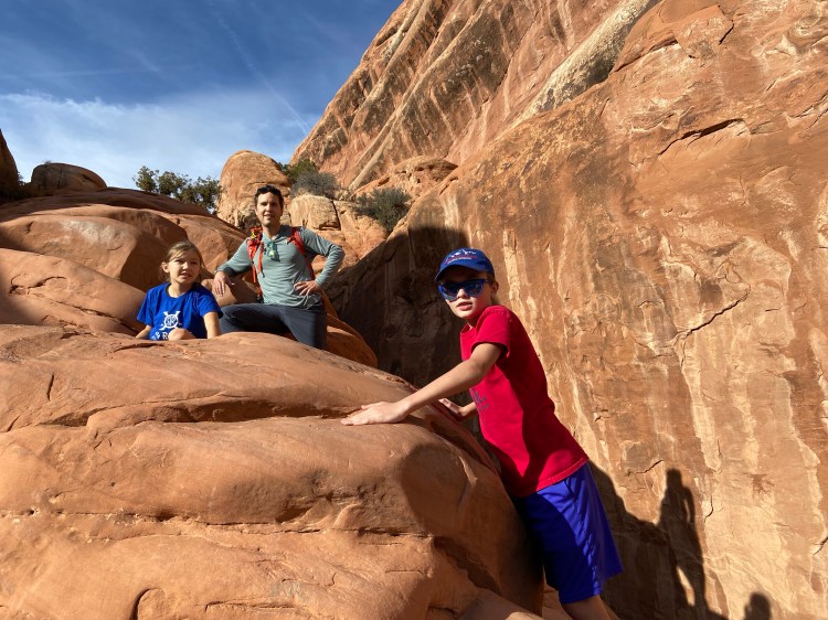With steep swirling sandstone cliffs and fins and slickrock ledges, an often treacherous climate with wild daily temperature swings, spooky slot canyon systems with flash-flooding risks, tarantulas, scorpions, and rattlesnakes, hiking in the Southwest is no joke. Our lack of familiarity with the climate and terrain (we have done most of our hiking in CT, VT, NH, NY, and ME) made us cautious in what we initially were willing to bite off — we know how our family performs in New England conditions, but we’ve introduced lots of new variables here.