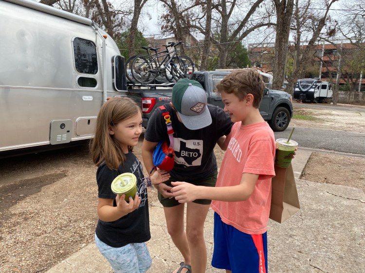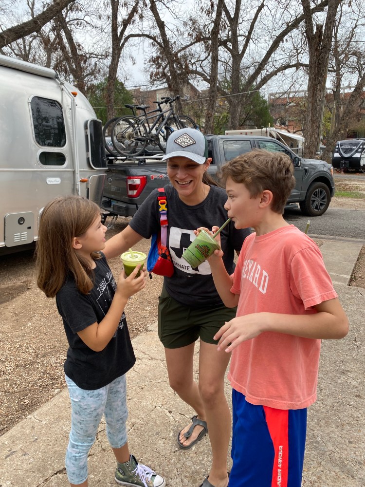 We spent the month of January at Tiger Run RV Park on the north side of Breckenridge, Colorado at 9,600 feet. The drive from Austin to Breckenridge was our most harrowing yet, particularly as we had a small weather window for towing. We left Austin on January 1st, a little later than we’d hoped after getting the Airstream ready to roll and grabbing one last smoothie at our favorite spot, Juice Land.