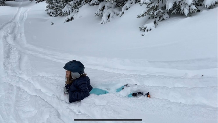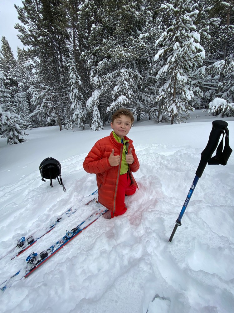 I leaped up the mountain, occasionally looking back to see my family, right behind me. Today it was actively snowing, and we were making use of our new uphill skis.