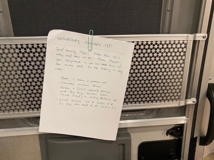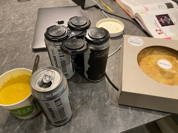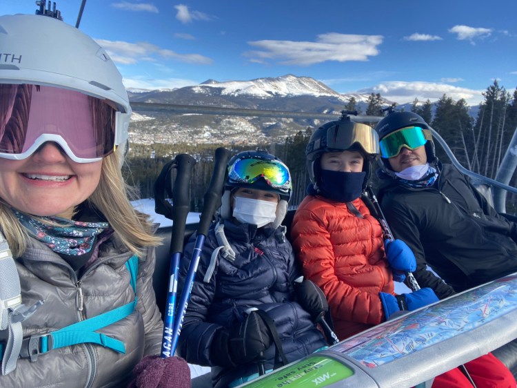 Later in the afternoon, I scooped up Tim and the kids and we headed into Breck for some regular old freezing-cold resort laps on Peak 6 and Peak 7. To stay warm on the lifts, we discussed the day’s lessons… Where in the story of Romeo and Juliet things all went wrong – which if any character bore the ultimate responsibility? Of course we all had different opinions on this! Finished the day with our best effort at covid-friendly apres-ski – hot soup and pie from Whole Foods and some local IPAs for the parents.